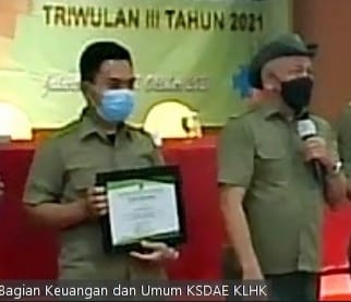 Pekanbaru, 25 Oktober 2021 - Balai Besar KSDA Riau menerima penghargaan sebagai Satua Kerja (Satker) Berkinerja Terbaik ke-2 dalam Pengelolaan BMN lingkup Ditjen KSDAE periode tahun 2017 sd 2021, Senin (25/10). Penghargaan diberikan Direktur Jenderal KSDAE Ir. Wiratno, M.Sc pada acara Rekonsiliasi Laporan Keuangan dan BMN lingkup Direktorat Jenderal KSDAE di Hotel Ciputra, Jakarta.
