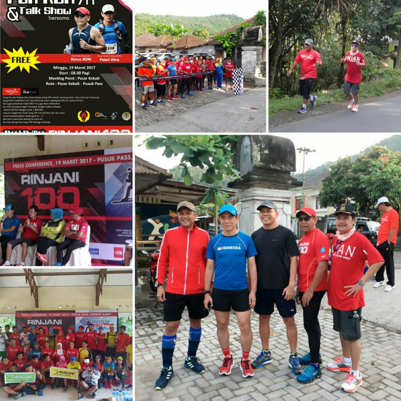 Acara tersebut turut dihadiri Polda NTB, Dinas Pariwisata NTB, BASARNAS NTB, Balai TNGR, KPHL Rinjani Barat dan para penggiat olah raga lintas alam di NTB. Kegiatan Fun RUN 7K dimulai puku 8.00 WITA dengan Rute : Pasar Kekait - Pusuk Pass dengan meeting point di Pasar Kekait. Acara dilanjutkan dengan Talkshow dan Konferensi Pers. Narasumber Talkshow acara tersebut antara lain Ketua KONI NTB Andy Hadianto, Kepala Dispora NTB Hj. Husnanidiaty Nurdin, Kepala Balai TN Gn Rinjani, dan Pelaksana Rinjani 100 Hendra Wijaya.