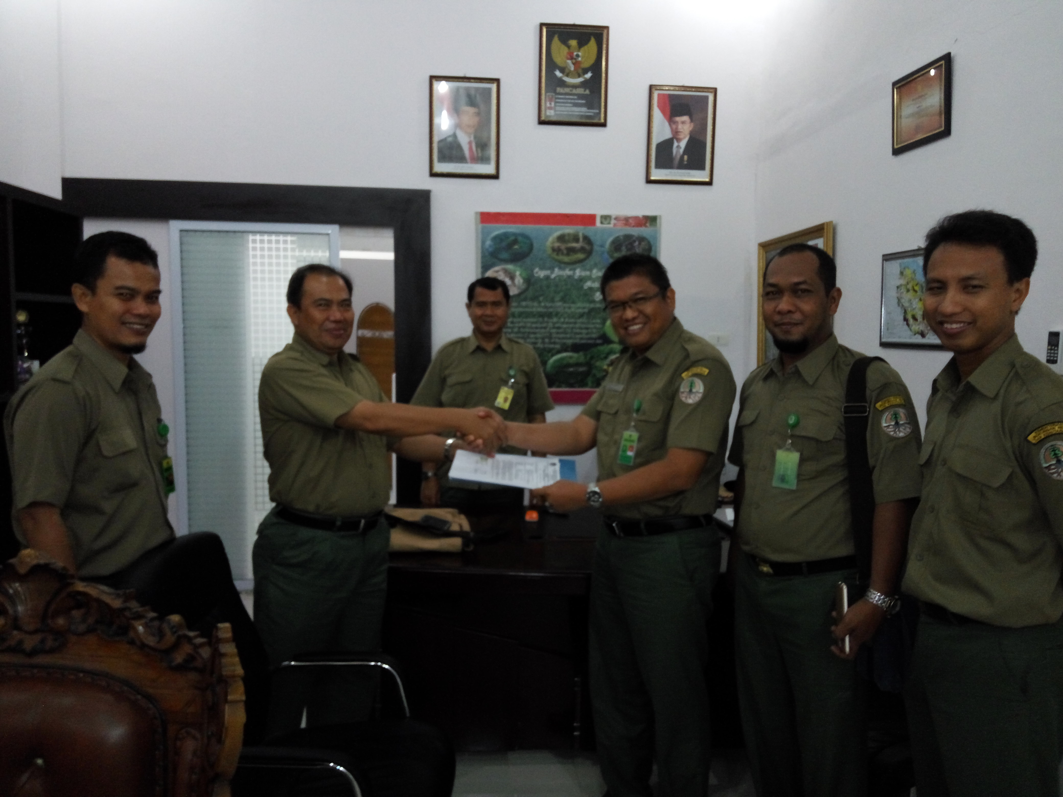 Pekanbaru, 20 Maret 2017. Balai TN. Tesso Nilo dan BBKSDA Riau telah melakukan penandatanganan berita acara serah terima pengelolaan Gajah Sumatera (Elephas maximus sumatranus) pada hari senin, tanggal 20 Maret 2017 di kantor Balai Besar KSDA Riau, Jln. HR. Soebrantas Km 8,5 Pekanbaru. Penandatanganan dilakukan antara Kepala Balai Besar KSDA Riau, Dr. Ir. Mahfudz, M.P dengan Kepala Balai TN. Tesso Nilo, Supartono, S.Hut, M.P. Serah terima ini disaksikan oleh Kabag TU BBKSDA Riau Setyo Utomo, S.H., M.Si., Kasi P3 BBKSDA Ujang Holisudin, S.Hut. dan Ka. Seksi SPTN Wilayah I Lubuk Kembang Bunga Taufiq Haryadi, S.P.